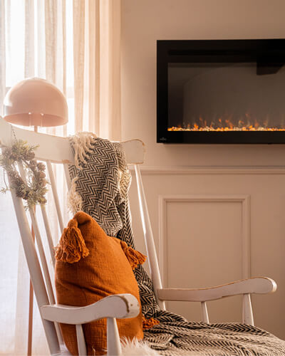 Light natural tones such as greige (a mixture of grey and beige), brown tones and even rusty, matt colours are all the rage and accentuate the e-fireplace design. Patterned wallpapers are also celebrating their big comeback and give the look and feel that special something. So: repaint the wall, wallpaper it, use spatula techniques or set the scene with stucco. This way, you don't just give the wall a striking effect - the Napoleon Premium Fire becomes an absolute eye-catcher.