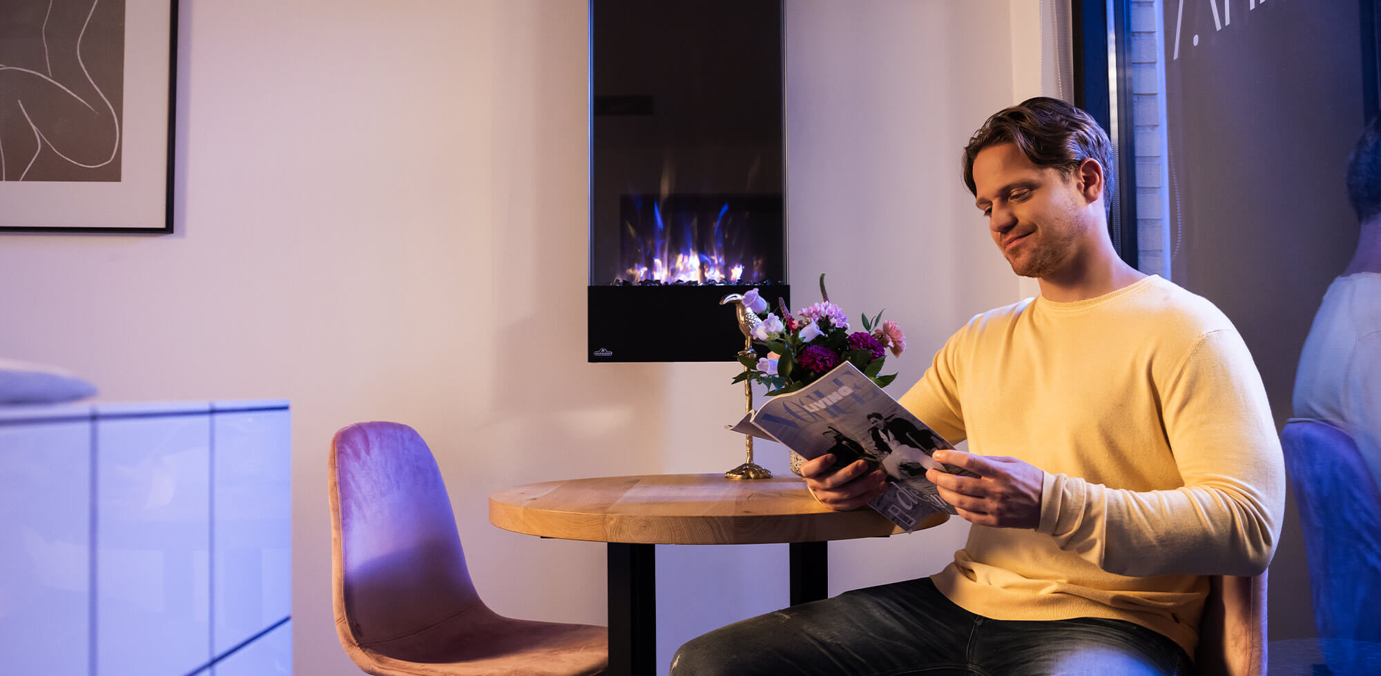 Before choosing your electric fireplace, you should consider in which room and at what height you wish to install it. The available free wall space determines the optimal width for the electric fireplace - for instance, if you have 170 to 230 centimetres of free wall space, Napoleon Premium Fire electric fireplaces with a width of 127 to 152 centimetres would be optimal. The play of flames works best if you place your electric fireplace at eye level or a little above it. Simply sit on a chair in the dining room, an armchair or couch in the living room or lie on the bed in your bedroom to find out.